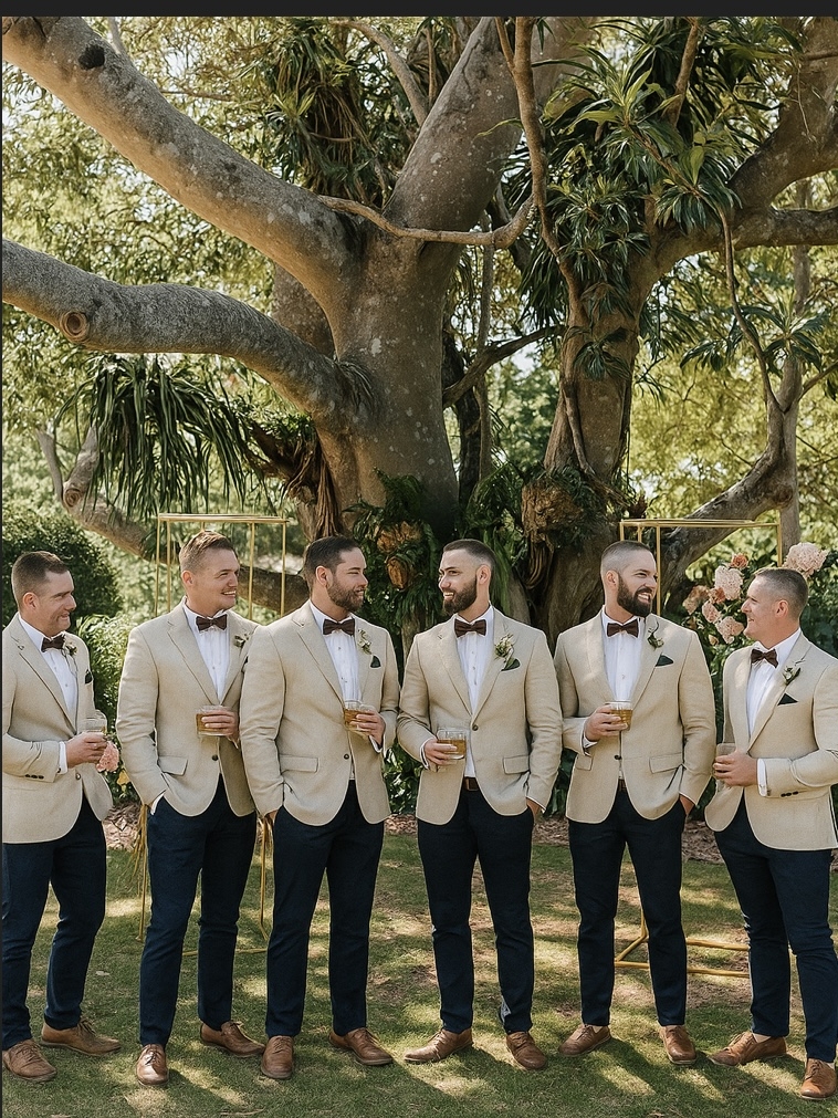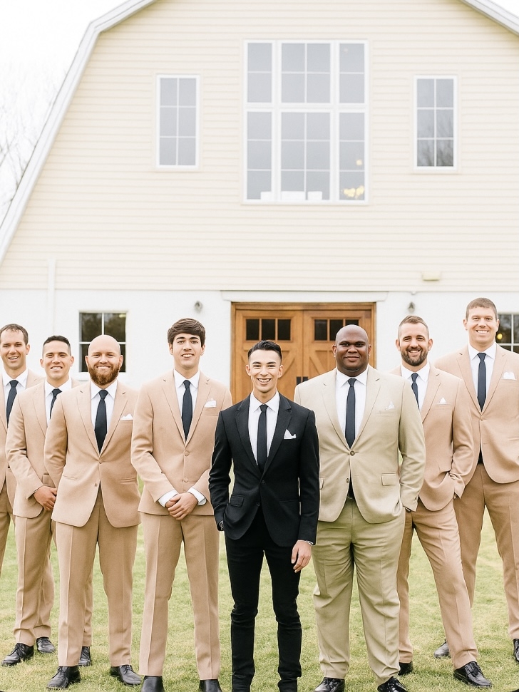 Beige wedding suit idea