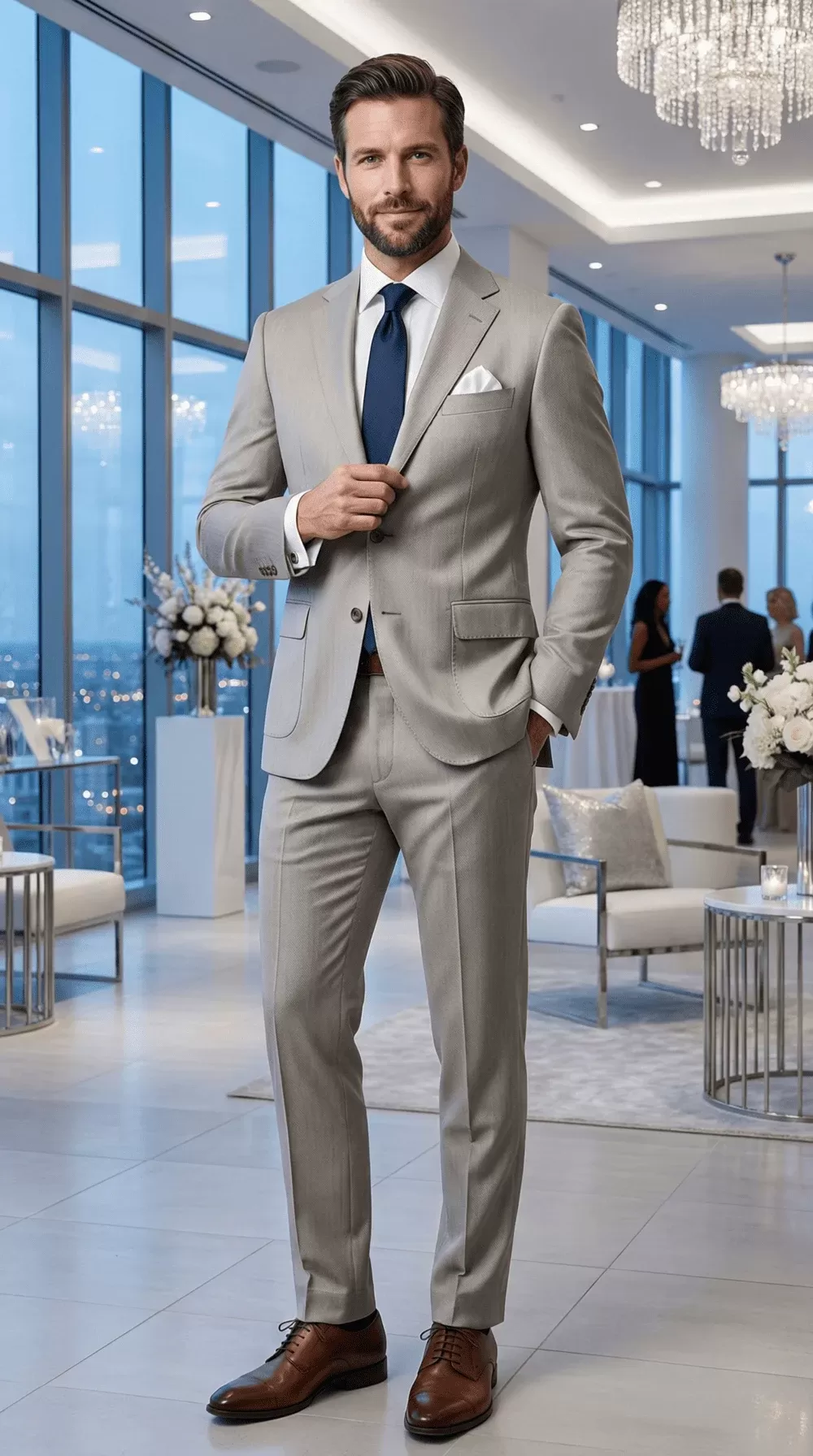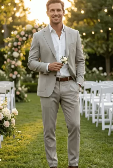 Light Gray Beige Two-Button Patch Pocket Suit - NHDM2