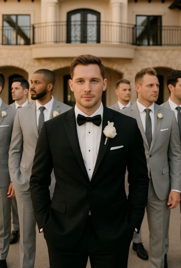 Light Gray Twill Five-Button Wedding Vest (V-Neck Double Pocket) - LU1M16