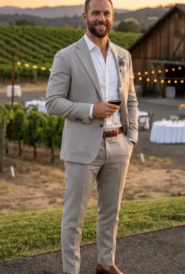 Light Gray Beige Two-Button Patch Pocket Suit - NHDM2
