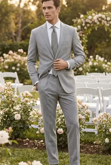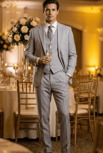 Light Gray Twill Five-Button Wedding Vest (V-Neck Double Pocket) - LU1M16