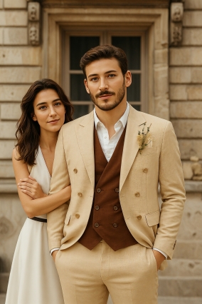 Usually, yes. A matching vest elongates the body. However, a contrasting vest (e.g., buff or dove grey with a charcoal suit) creates a classic 'Morning Suit' feel that is very traditional and stylish.