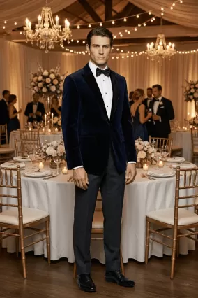 - Texture: Wear a velvet jacket (e.g., in Bottle Green or Midnight Blue) while your groomsmen wear classic wool suits.