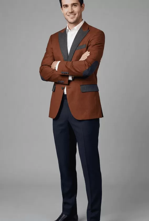 Rust-Brown Wool-Blend Tuxedo with Charcoal Satin Contrast