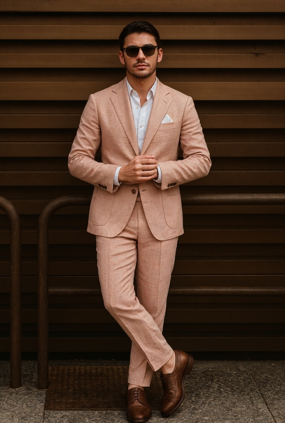 Rust-Brown Wool-Blend Tuxedo with Charcoal Satin Contrast