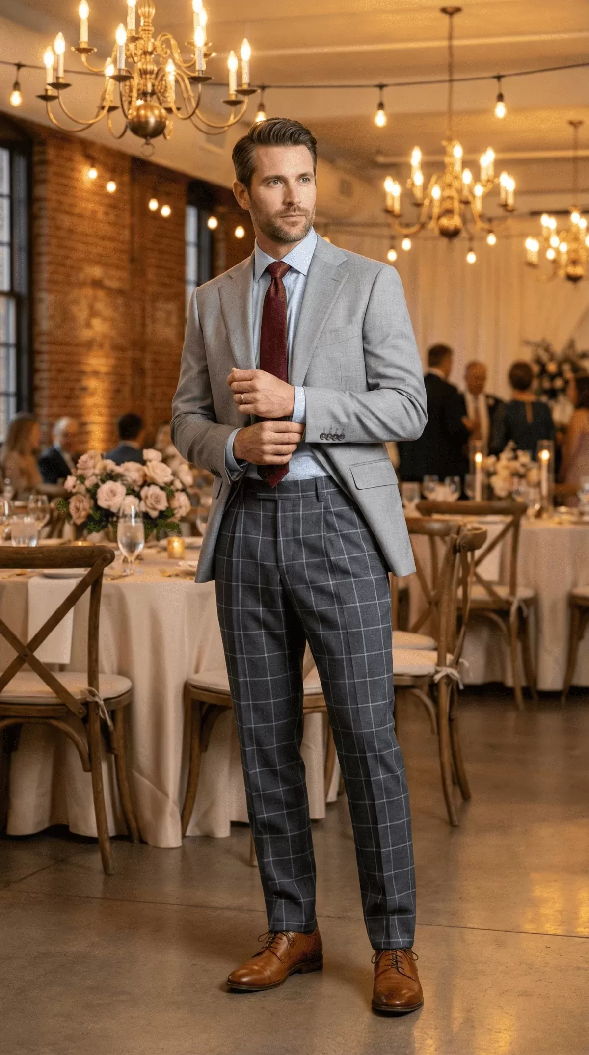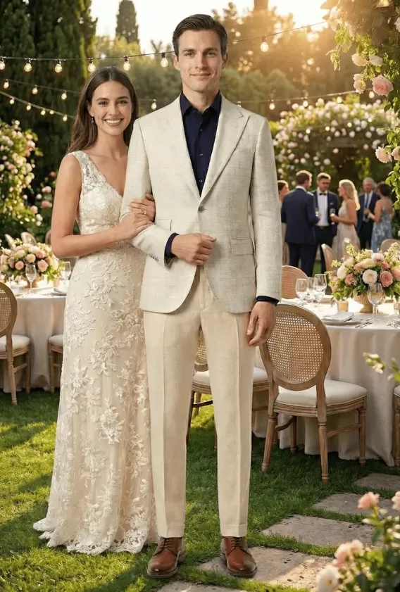 Gray blazer with beige trouser wedding suits - LU1M16