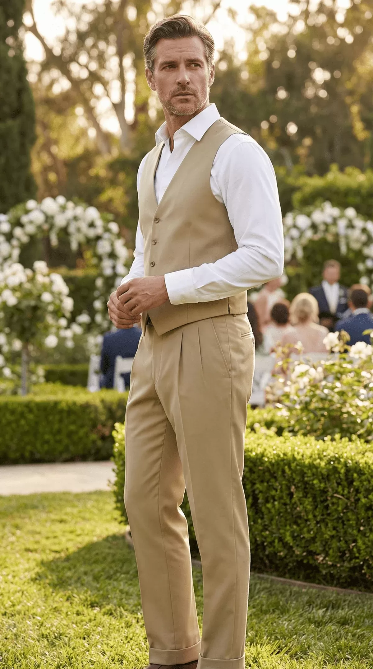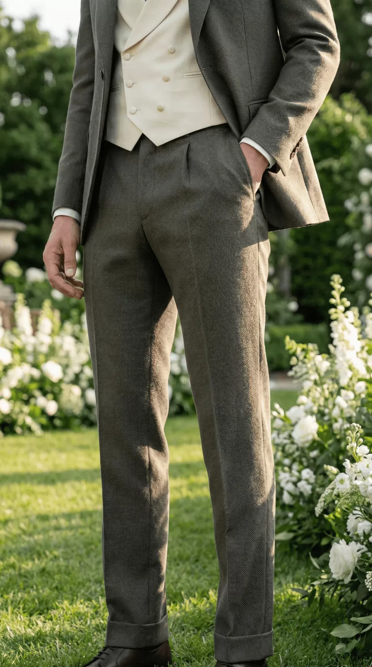 Cream Khaki Twill Vintage Wedding Pants - SP2M120