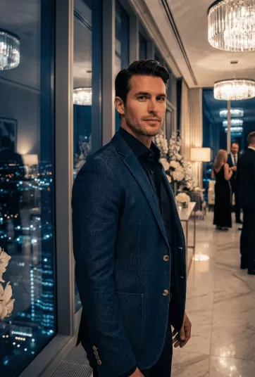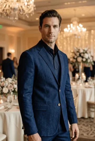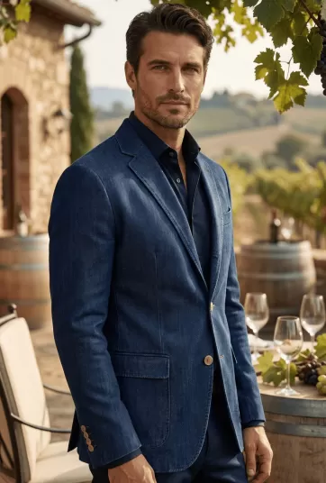 Navy Blue Denim Twill Two-Button Blazer - NHC37