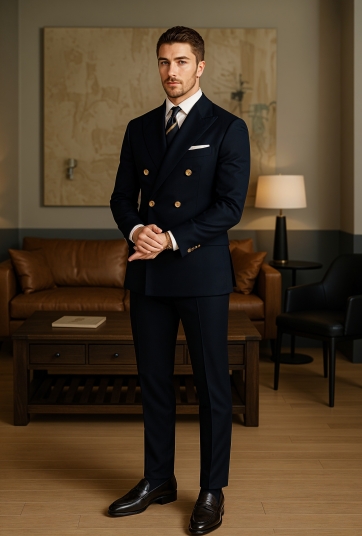 $1356 Buttons, Double Breasted (2 to Close) | RegularNotch LapelNo Buttonhole | Straight | 2 Straight pockets (No flap) | 4 Standard buttons | Side vent